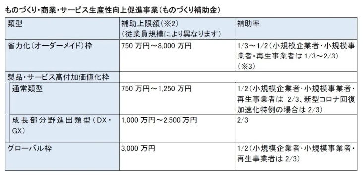 【2026年最新】リスキリングに使える補助金・助成金・給付金一覧 人事キーワード・ノウハウ 公開日:2025年02月12日(水) 最終更新日:2026年01月05日(月) 近年、従業員がスキルや知識を再度習得する「リスキリング」についての関心が高まっています。リスキリング導入企業は増えているものの、その実施には多額の費用がかかります。 しかし、条件を満たせば、国・民間団体から補助金や助成金、給付金を受けられる場合があります。 今回は補助金・助成金・給付金の内容や条件、申請方法を解説します。 目次リスキリングとはリスキリング支援の補助金・助成金・給付金一覧まとめ リスキリングとは リスキリングとは、” 新たな業種・職種に順応できるようにスキルやノウハウを学ぶこと”です。re-skillingが語源で「学びなおす」という意味があります。 日本政府も推進している取り組みであり、学んでおきたい領域としてマーケティングやプログラミング、データ分析などはよく取り上げられています。 リスキリングの導入によって、人材不足の解消や企業のDX推進などが期待できます。 以下の記事で詳しく解説していますので参考にしてみてください。 リスキリングとは?意味や導入時のコツ、リカレント教育との違いを解説 リスキリング支援の補助金・助成金・給付金一覧 リスキリングの支援には、補助金・助成金・給付金があります。 今までは企業を経由する補助金・助成金が中心となっていましたが、最近では個人向けの支援も充実しています。 ここからはそれぞれについて詳しくご説明します。 補助金 補助金は、公的な資金を財源として国や地方自治体が編成する予算のため、申請や審査が必要です。政策を推進するための活動に即していると判断された場合のみ、支給を受けることができます。 リスキリングを行う上で使える補助金は2つあります。 ・ものづくり補助金(ものづくり・商業・サービス生産性向上促進補助金) ・IT導入補助金 ものづくり補助金(ものづくり・商業・サービス生産性向上促進補助金) ものづくり補助金は、中小企業・小規模事業者等が事業環境の変化に対応できるように支援する制度です。2024年9月時点では3つの枠があります。 ・ 省力化(オーダーメイド枠) ・ 製品・サービス高付加価値化枠(通常類型・成長分野進出類型) ・ グローバル枠 リスキリングを行う際は、製品・サービス高付加価値化枠(成長分野進出類型)が利用可能です。 参考:「ものづくり補助金総合サイト」 IT導入補助金 IT導入補助金は、中小企業や小規模事業者が売上や業務効率を上げる目的でITツールを導入する際に、費用の一部を支援する制度です。5つの枠で構成されており、それぞれで上限/下限額や補助率が異なります。 ・ 通常枠 ・ インボイス枠(インボイス対応類型) ・ インボイス枠(電子取引型) ・ セキュリティ対策推進枠 ・ 複数社連携IT導入枠 参考:「IT導入補助金2025」 助成金 助成金は一定の条件を満たしていれば原則支給されます。補助金と違って審査の必要がありません。リスキリングを行う上で使える補助金は3つあります。 ・ 人材開発支援助成金 ・ 特定求職者雇用開発助成金 ・ DXリスキリング助成金 人材開発支援助成金 人材開発支援助成金は、計画的に知識やスキルを習得させるための職業訓練などを社員に対して実施した際の経費を国が助成してくれるものです。 2024年9月時点で6つのコースがあり、その中の1つに「事業展開等リスキリング支援コース」があります。賃金助成額は1人1時間当たり960円(中小企業以外だと480円)です。 参考:厚生労働省「人材開発支援助成金」 特定求職者雇用開発助成金 障害者、高齢者などの就職困難者を成長分野の業務に従事させ、職場定着に取り組む場合に支給されます。成長分野等人材確保・育成コースだと、採用する労働者によりますが1人あたり最大で3年間360万円の助成を受けることができます。 参考:厚生労働省「特定求職者雇用開発助成金(成長分野等人材確保・育成コース)」 DXリスキリング助成金 DXリスキリング助成金は、公益財団法人東京しごと財団が提供する制度です。東京都内の中小企業などが社員に対して、DXに関する研修(集合訓練やeラーニング)を実施すると経費の一部が助成されます。 参考:「DXリスキリング助成金」 給付金 給付金とは国や地方自治体が事業主や個人に支給するものです。個人が申請できるものが多くあります。使える給付金は3種類あります。 ・ 教育訓練給付制度(一般教育訓練) ・ 教育訓練給付制度(特定一般教育訓練) ・ 教育訓練給付制度(専門実践教育訓練) 参考:厚生労働省「教育訓練給付制度」 教育訓練給付制度(一般教育訓練) 一般教育訓練は、雇用の安定・就職の促進を支援する教育訓練が対象となります。厚生労働大臣が指定する一般教育訓練を受講し、修了した場合、本人が支払った教育訓練経費の20%(上限10万円)が支給されます。 教育訓練給付制度(特定一般教育訓練) 特定一般教育訓練は、労働者の速やか