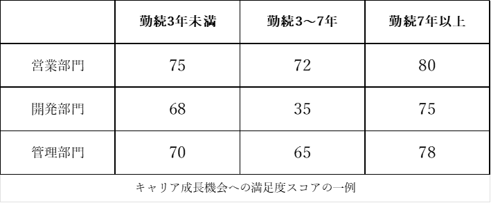 組織サーベイの形骸化 第2回 ~“組織サーベイ結果は宝の山” データから「本質的な課題」を掘り当てる技術〜 人事キーワード・ノウハウ連載 公開日:2026年01月21日(水) 多くの企業で導入されている「組織サーベイ」。従業員の声を可視化し、組織の課題を明らかにするための有効な手段として活用されています。しかし、実際には「時間とコストをかけたのに、現場は何も変わらなかった」と感じたことはありませんか? 第2回となる本コラムでは、サーベイ結果を「分析したつもり」で終わらせないために、定量データと自由記述に隠された従業員の”本音”を読み解く具体的な手法をご紹介します。Google社の事例から学ぶ「心理的安全性」の本質や、組織診断フレームワークを活用し、表面的な問題の奥に潜む構造的要因を特定します。 目次「コミュニケーション不足」という”思考停止ワード”を超えて定量分析の深化―クロス集計と時系列分析で”異常値”を捉える定性分析の真髄―自由記述は”不満のゴミ箱”ではなく”インサイトの宝庫”Google「プロジェクト・アリストテレス」に学ぶ本質の見抜き方まとめ―組織診断フレームワークで課題を構造化する 「コミュニケーション不足」という”思考停止ワード”を超えて 組織サーベイの結果を分析すると、多くの企業が「コミュニケーション不足」や「心理的安全性の低さ」という結論に行き着きます。 しかし、これらは課題の本質を捉えているようで、実は思考停止を招く”症状”に過ぎません。たとえば「コミュニケーション不足」という診断の裏には、「部門間の連携を阻害する評価制度」や「情報が意図的に特定層に留め置かれる組織構造」といった、より根深い”病根”が隠れている可能性があります。 こうした背景を無視して、ただ表面的なコミュニケーション施策、たとえば懇親会の費用補助や社内報の活性化といった対症療法を繰り返すだけでは、根本的な解決には至りません。 では、データ分析を通じてこれらの症状から真の病根を探り当てるためには、具体的にどうしたらいいのでしょうか? 定量分析の深化―クロス集計と時系列分析で”異常値”を捉える 全社平均という”霧”を取り払い、組織の解像度を上げるためには、データを多角的に切り分ける技術が不可欠です。その最も基本的かつ強力な手法が「クロス集計」です。 たとえば、エンゲージメントサーベイで「キャリア成長の機会がある」という設問を、部署と勤続年数を掛け合わせて分析することで、特定のグループが抱える課題が鮮明に浮かび上がります。 上のサンプルを見てください。全社平均では見過ごされがちな問題が一目瞭然です。このケースでは「勤続3~7年の開発部門」のスコアが突出して低いことがわかります。 これにより、「全社的なキャリアパスを見直そう」という漠然とした施策から、「中堅クラスの開発職がキャリアの停滞を感じる原因は何か?」という、具体的で的を絞った問いを立てることが可能になります。 加えて、「時系列分析」も有効な手法です。過去のサーベイ結果と比較し、特定の出来事(新人事制度の導入、大規模な組織変更など)の前後でスコアがどう変動したかを確認することで、施策の効果や意図せざる副作用を客観的に評価できます。 これらの定量分析は、どこに問題が潜んでいるのかを特定するための、強力な羅針盤となります。 定性分析の真髄―自由記述は”不満のゴミ箱”ではなく”インサイトの宝庫” “恨み節の大合唱”と敬遠されがちな自由記述欄。実はそこにこそ、組織のリアルな文化や価値観が映し出されています。 自由記述欄を単なる”不満のゴミ箱”として扱うか、”インサイトの宝庫”として活用するかで、分析の深さは大きく変わります。重要なことは、何が書かれているか(What)だけでなく、それがどのように書かれているか(How)を分析することです。 たとえば、複数の従業員が「会議」に関する不満を記述していたとしましょう。もし彼らが「無駄」「結論が出ない」「時間の浪費」といった言葉を使っていれば、それは非効率なプロセスや官僚的な文化を示唆しています。 一方で「発言しづらい」「意見が無視される」「トップダウン」といった言葉が頻出するなら、問題の根源は心理的安全性の欠如や階層的な組織構造にある可能性が高いでしょう。 前者は会議のファシリテーション研修で改善できるかもしれませんが、後者はリーダーシップのあり方そのものを見直す必要があります。このように、従業員が使う”言葉”そのものをデータとして捉え、その背後にある感情や価値観を読み解くことで、組織文化の診断が可能になるのです。 Google「プロジェクト・アリストテレス」に学ぶ本質の見抜き方 Google社が実施した「プロジェクト・アリストテレス」は、サーベイとデータ分析を用いて組織の本質的な課題を明らかにした代表的な事例です。 彼らは「最高のチームを創る条件は何か?」という問いを立
